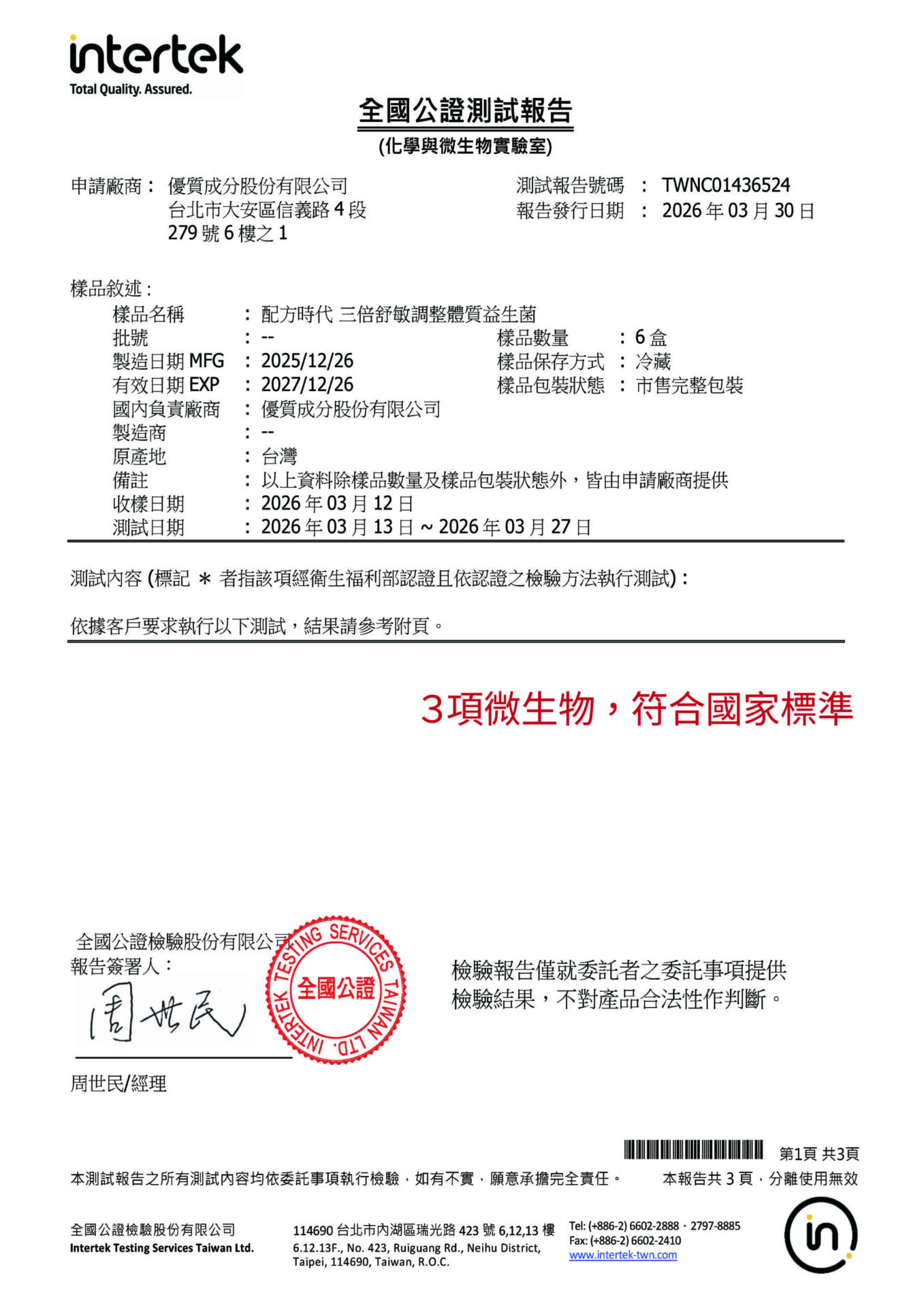 三株菌都具備調整體質之功效