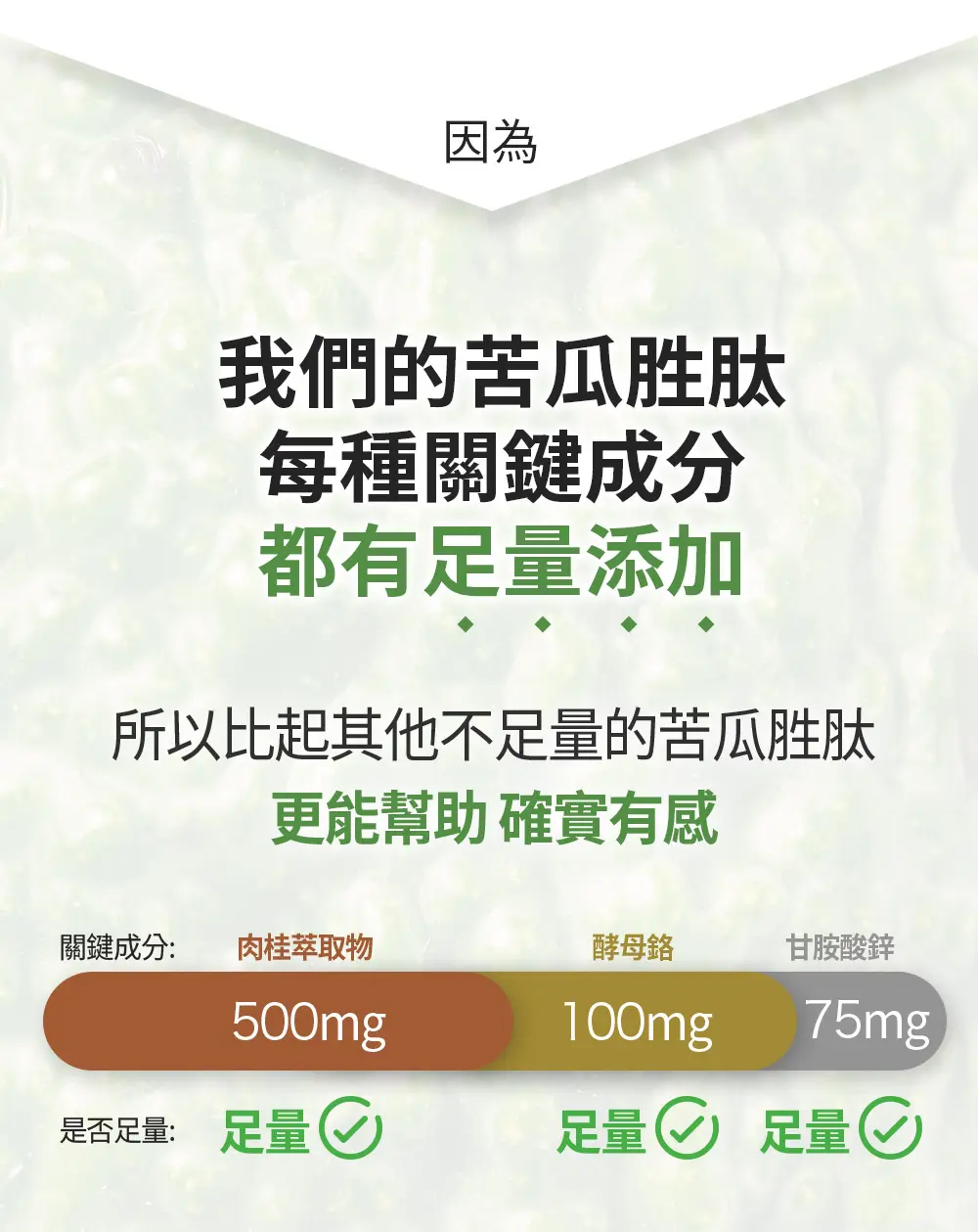 除此之外,我們還特別添加關鍵有感輔助成分,可以使苦瓜胜肽【確實有感】