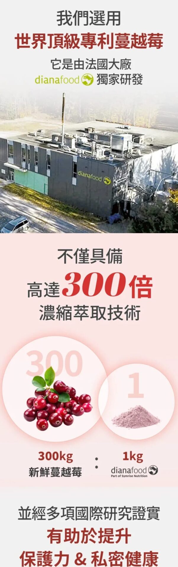 - 選用頂級的蔓越莓:多國功效專利認證