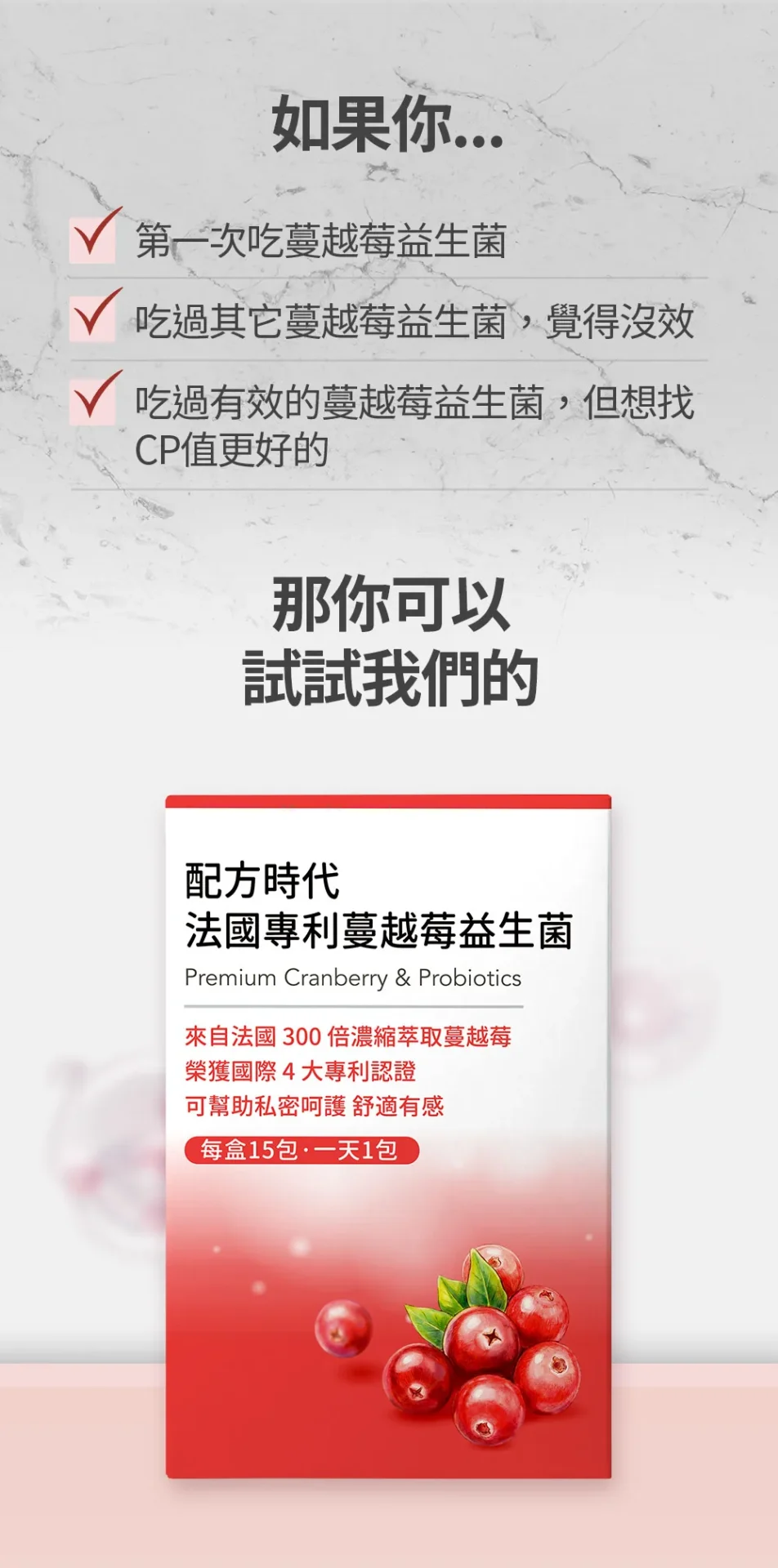 Q1:為什麼『配方時代 法國專利蔓越莓益生菌』敢說自己是最好的選擇之一?