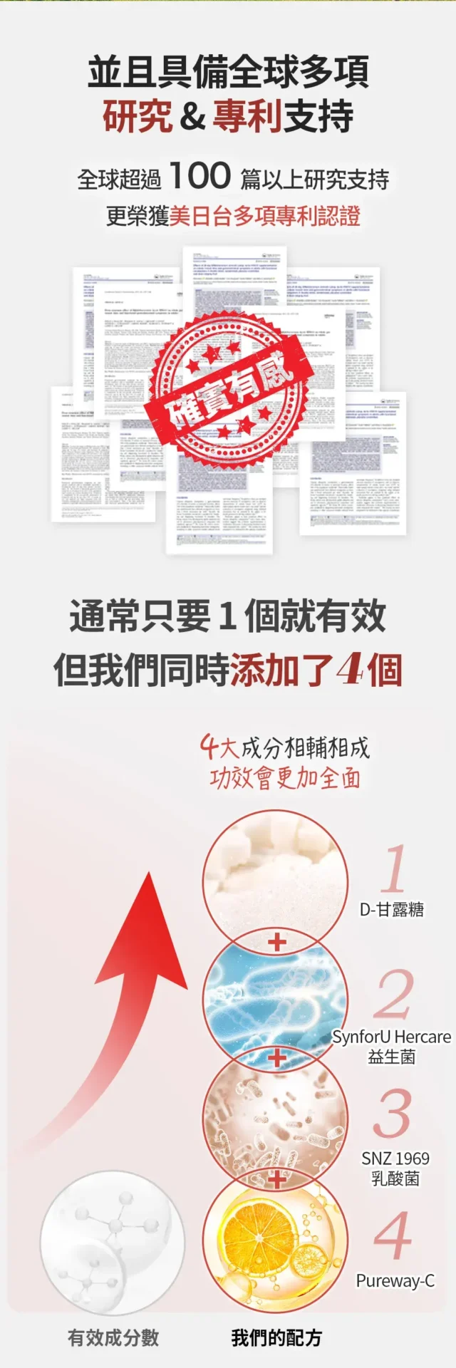 【沒有】任何產品可以保證 100% 有效,但我們能做的,就是把目前有效機率最高的成分,按照有效添加量給你